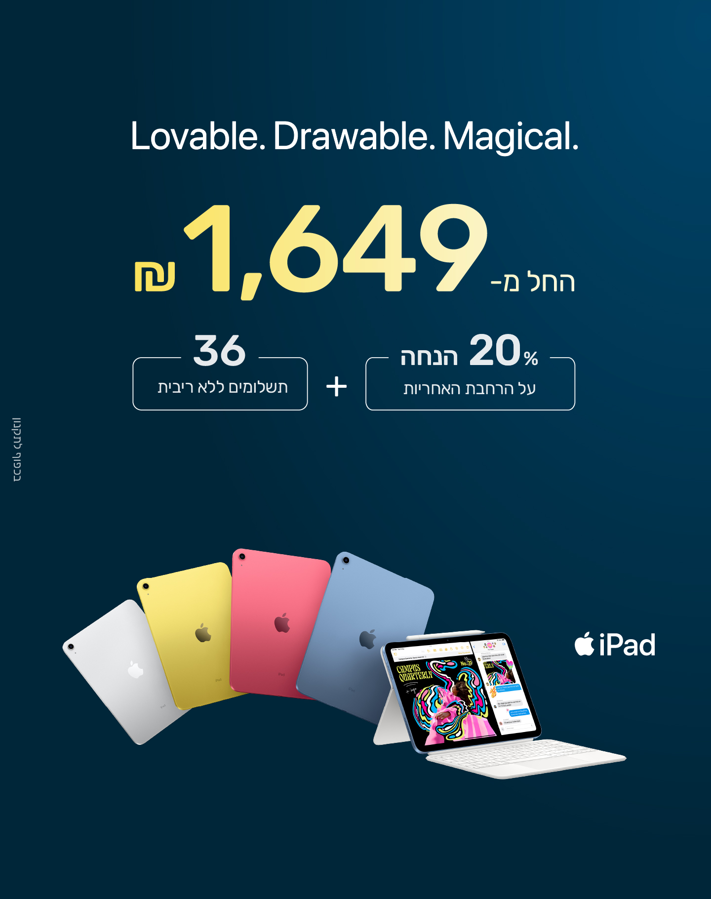 החל מ- ₪ 1,649 או ₪ 46 לחודש ב- 36 תשלומים